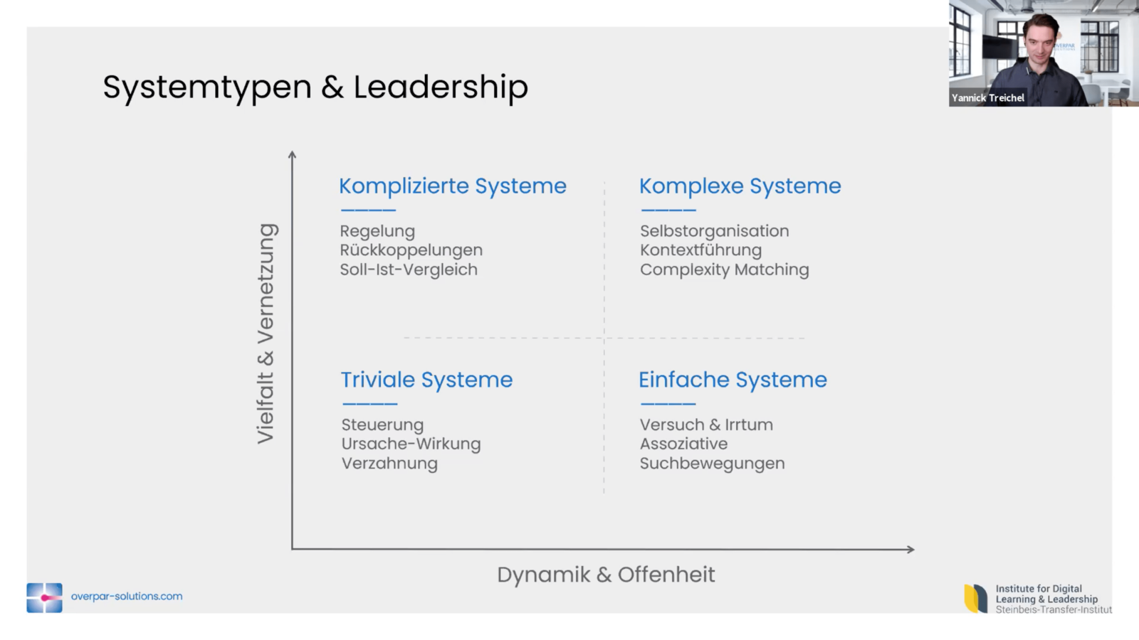 So gilt es ein Complexity-Matching zu machen. Also die Komplexität der Aufgaben, mit der Komplexität der Arbeitsweise in Einklang zu bringen. Wir unterscheiden dazu zwischen vier Systemtypen.